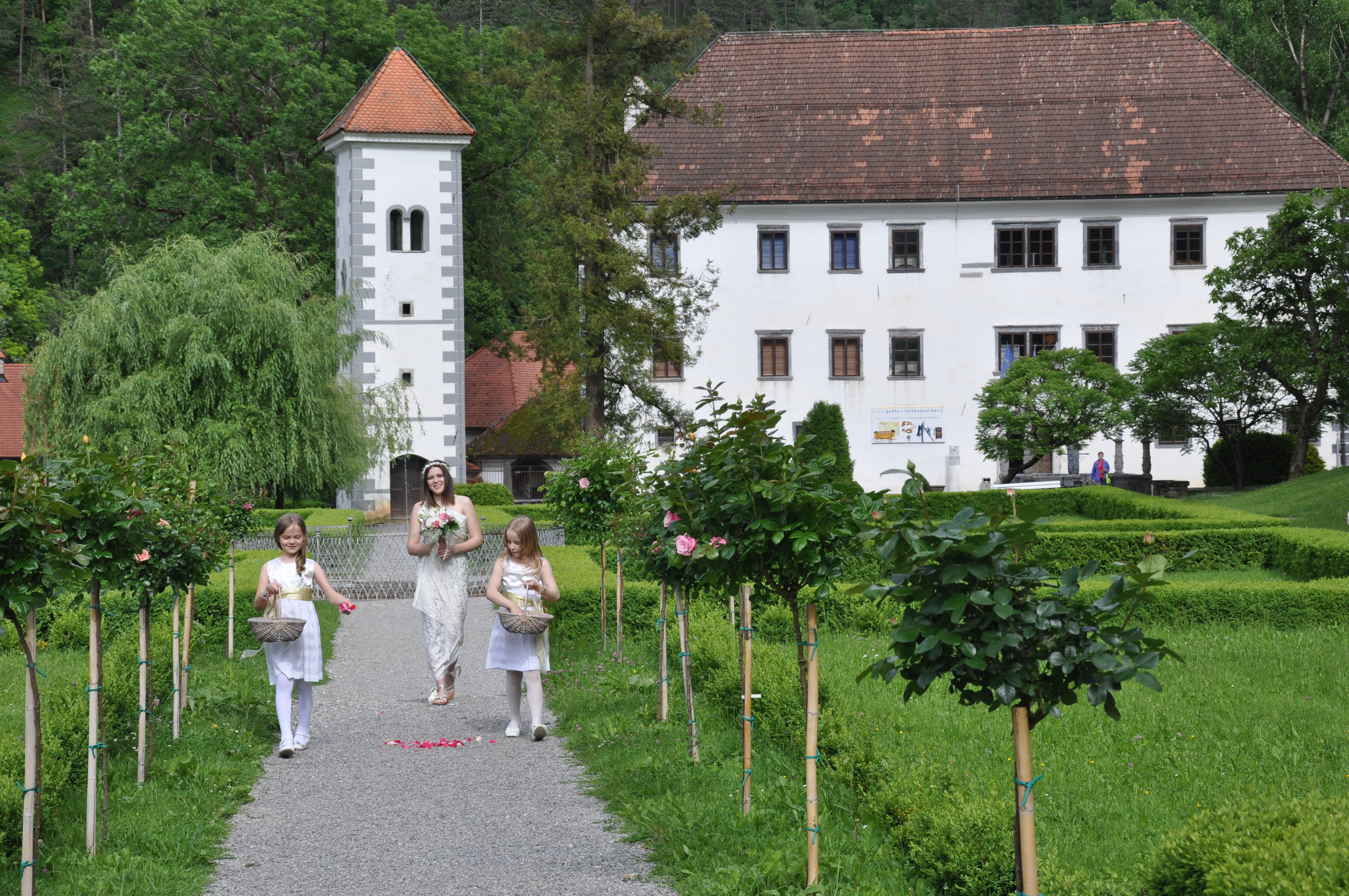 The romantic Polhov Gradec Mansion offers you an opportunity to take your vows at the mansion's wedding hall or park pavilion in the company of Count Blagay and continue your wedding celebrations under a century-old linden tree. A church wedding can be arranged in the mansion's chapel or in the village of Dvor's Parish Church of St. Mary's Birth or Church of St. Peter.