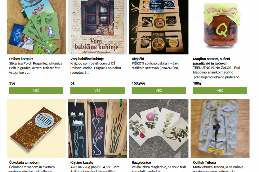 V zimskem času domuje naša fizična trgovinica v pritličju Polhograjske graščine, poleti pa v hišici v parku. Po novem so izdelki v njej dostopni na istem mestu skozi celo leto - na našem spletnem mestu. Potrudili se bomo, da bo v njej vedno kaj novega in zanimivega.